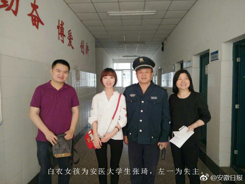 等待20多分钟,直到失主认领,张琦一颗悬着的心才落地。5月8日下午1点,安医大护理学院应届毕业生张琦,在学校食堂就餐时捡到一个装有8500元现金的小包。她在原地等待20多分钟没有等到失主后,主动联系辅导员帮忙寻找。几经周折,在安医大南区保卫人员配合下,最终联系上了男失主。男失主点赞:“重金面前不失青年学子本色,这是真‘天使’。”(记者 夏海军)