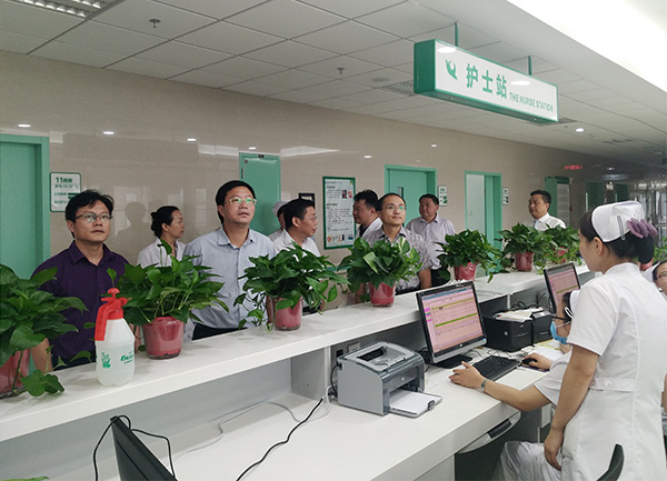 刘群英一行先后查看了该院新院区门诊大厅、门诊科室,心血管内科、神经内科病房等。充分肯定了该院新院区建设取得的成绩,对该院开诊后的运营情况表示满意。