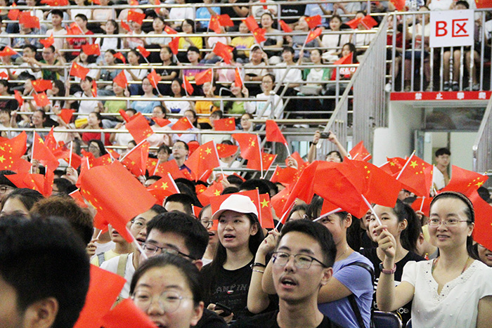 观影现场,在座师生被紧张激烈的剧情深深吸引。来自2018临床医学专业的陆冠达同学感触颇多,在接受记者采访时他谈到:“看完整场电影,脑海中全是一幕幕杨将军奋战的身影:飒爽英姿,纵身于白雪皑皑,扛着五尺枪痛击侵略者。这才是华夏男儿之楷模,中华民族之脊梁!”来自生物医学工程学院的郑冰冰同学说:“一步一步,雪地东踅西倒,他留下的痕迹是一腔爱国殷红热血的映照!杨靖宇,他以一位真正无产阶级战士的姿态在冰天雪地中书写了一部英雄史诗!”“杨靖宇在如此艰苦的环境中,视死如归,坚持战斗,他是我们心中真正的英雄。”党员干部和青年学子挥舞着手中国旗,点燃了浓浓的爱国情怀。