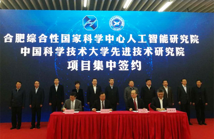 4月26日上午,合肥综合性国家科学中心人工智能研究院、中国科学技术大学先进技术研究院项目集中签约活动在中国科学技术大学先研院举行。省委常委、常务副省长邓向阳,省委常委、省人大常委会副主任、合肥市委书记宋国权,中国科学技术大学校长包信和,省政府副秘书长李必方,合肥市委副书记、市长凌云,以及省、市相关单位和高校有关负责人参加了项目集中签约活动。我校副校长汪凯出席活动,并代表学校同合肥综合性国家科学中心人工智能研究院签署战略合作协议。