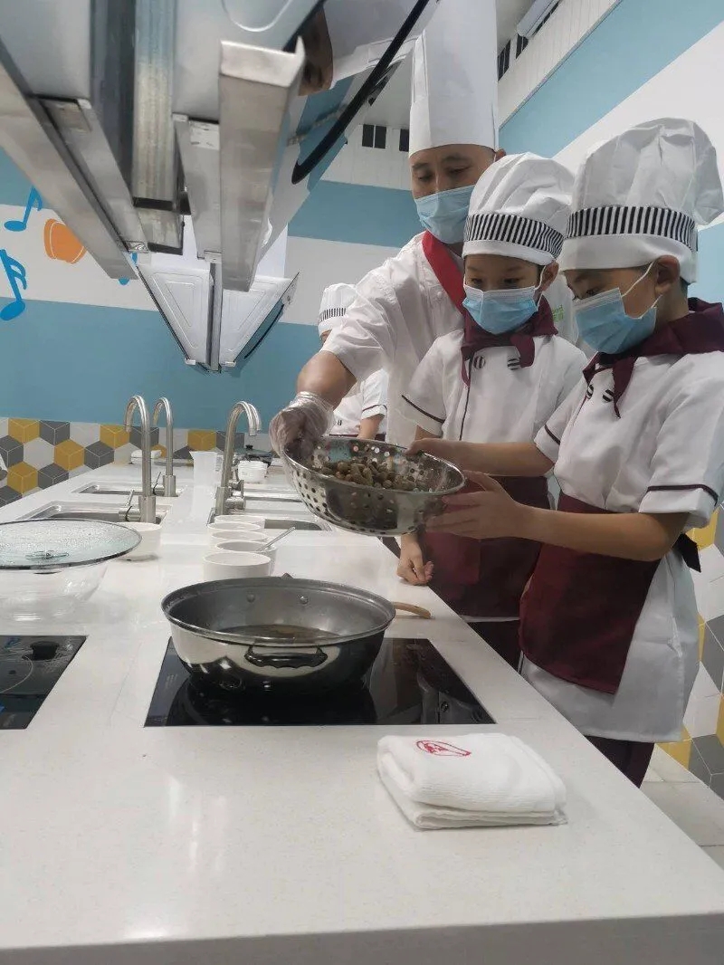 在学校的“小禹厨房”里,学生黄亦欣和同学们将收获的花生做成了一份水煮花生。【出录音】“我觉得做这盘菜很不容易,今后一定要珍惜粮食。”