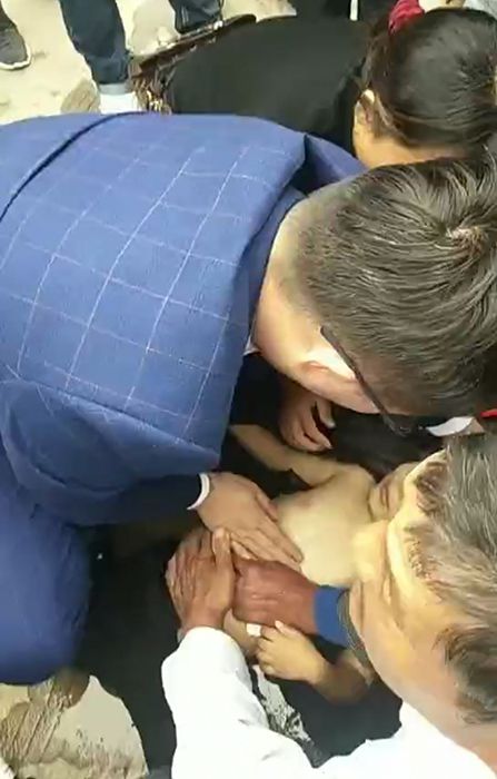 “我赶到的时候已经有人把孩子从水里救了上来。当时孩子状态不是很好,面部发乌,口唇发紫,生命体征很弱,处于昏迷状态。”作出紧急检查和判断后,张礼刚立马对孩子进行了持续1、2分钟的心肺复苏急救。幸运的是,孩子很快苏醒过来并发出啼哭。