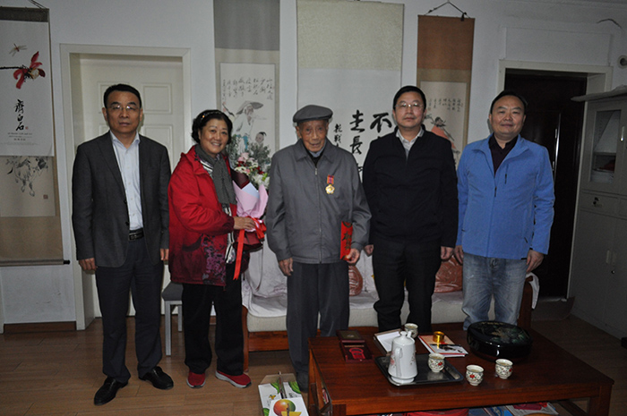 百岁老战士徐亚球佩戴上“中国人民志愿军抗美援朝出国作战70周年”纪念章