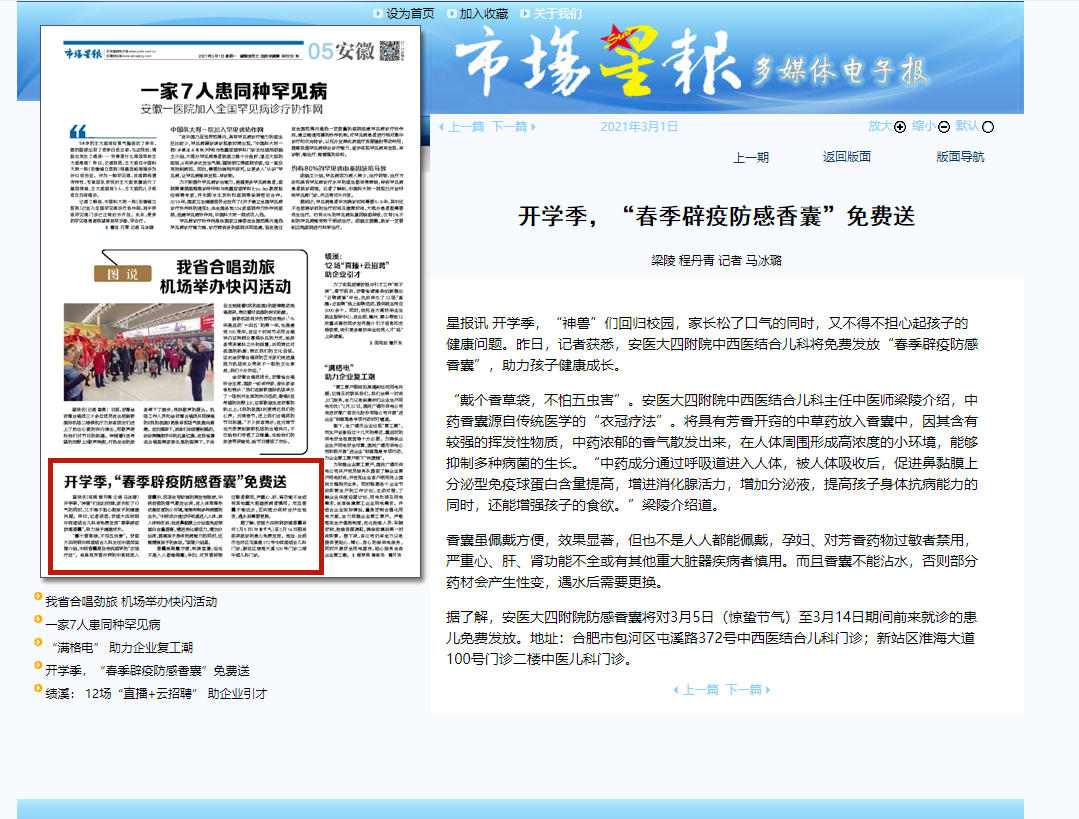 市场星报:开学季,“春季辟疫防感香囊”免费送