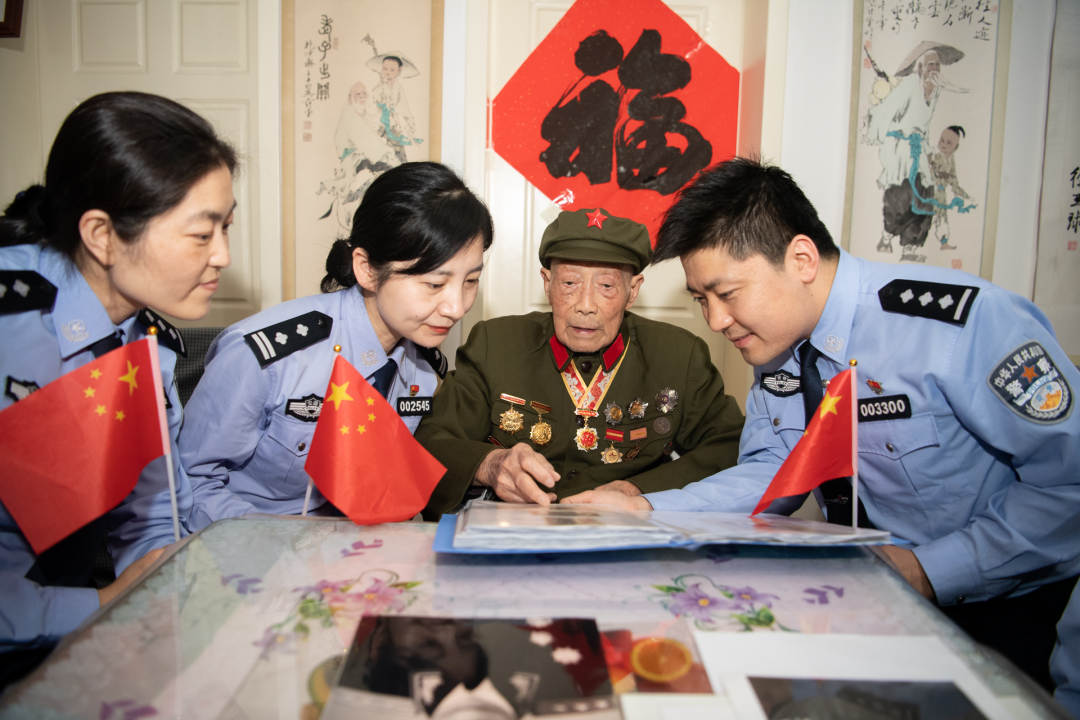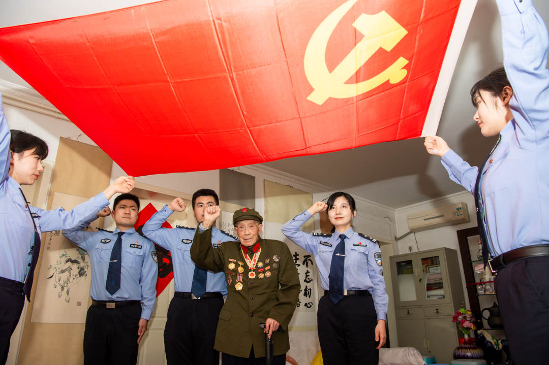 “今年是中国共产党成立一百周年,我们党百年奋斗的丰功伟绩光耀千秋!我是1921年出生的,是党的同龄人,我1942年入党,已经有近80年党龄......”5月21日下午,安徽省合肥市公安局政治部组织开展“访百岁党员、学百年党史、忆初心使命”主题党日活动,合肥市公安局退休党员民警徐宁宁带领青年党员民警们来到她父亲家中,围坐在一起,聆听百岁党员徐亚球讲授百年党史党课,接受红色教育,传承革命精神,践行初心使命,砥砺奋进动力。