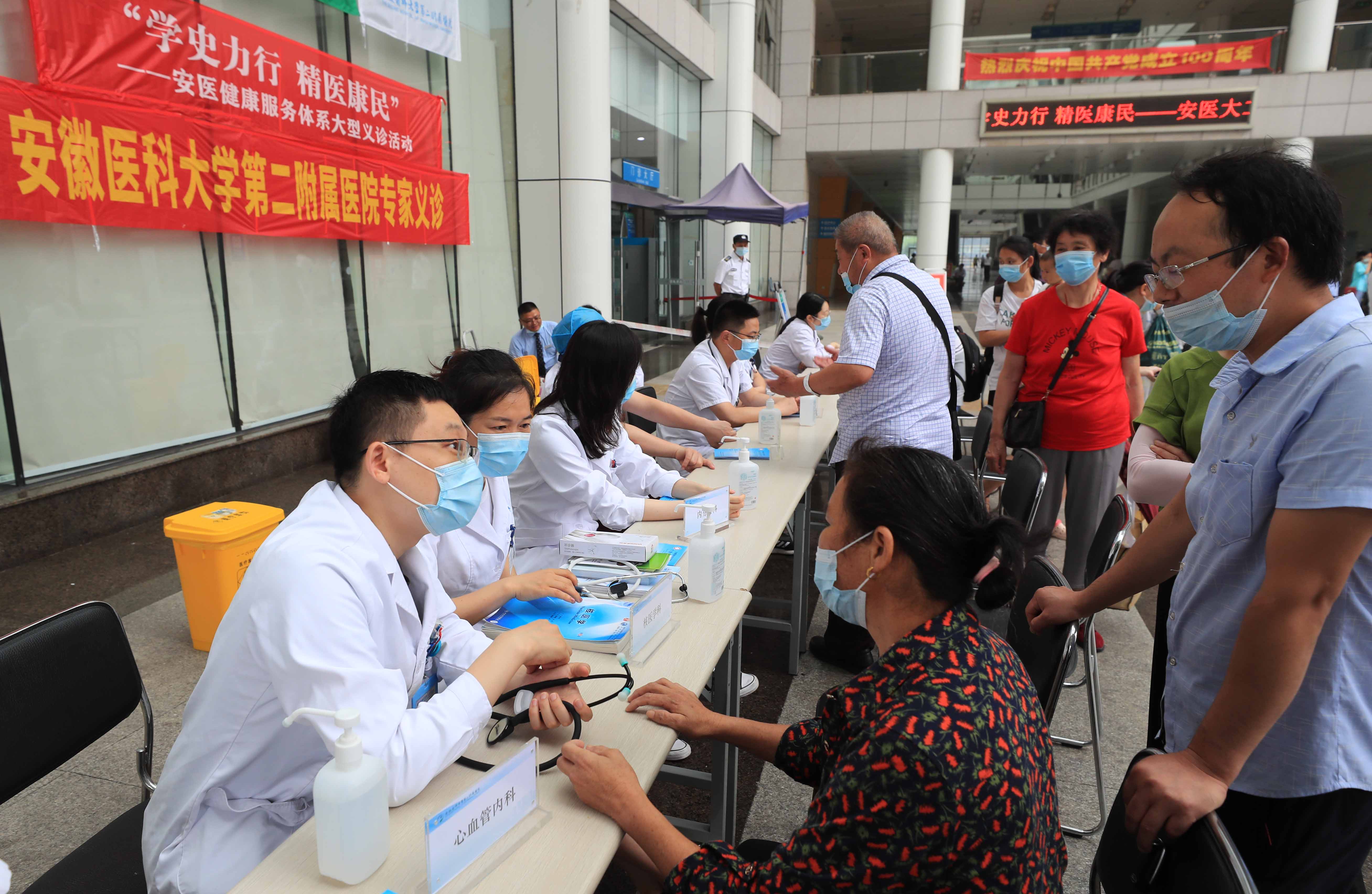 在安医二附院,当天7点半名医专家就开始摆台义诊。