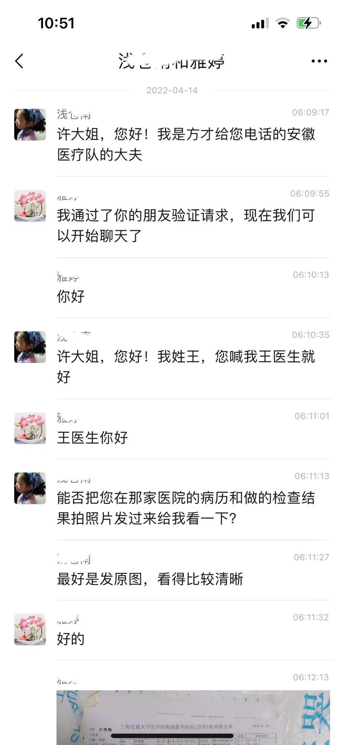 新安晚报 安徽网 大皖新闻讯  “我是王医生,请把您在医院的病历和检查结果发给我看下。”“大姐,有救护车去接您了。”“大姐,已经回到床位上了么?”听到患者已经安全回到方舱医院,王楠紧绷了一夜的心终于放下了。日前,上海复兴馆方舱医院一患者突发心绞痛,安徽援沪专家进行紧急处理后助其转运至有条件的医疗机构完善检查以全面评估。