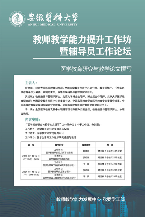 教师教学能力提升工作坊暨辅导员工作论坛:医学教育研究教学论文撰写