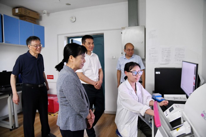 调研中,王琦、张智等陪同赵明一行前往国家卫生健康委配子及生殖道异常研究重点实验室、炎症免疫性疾病安徽省实验室和安徽省实验动物中心进行实地调研,现场与相关负责人详细交流,全面了解了实验室和中心建设情况。