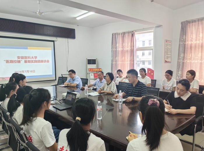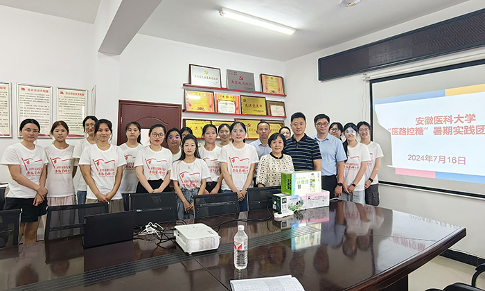 7月16日,校党委常委、统战部部长顾秀平一行前往合肥市庐江县万山镇卫生院,慰问指导护理学院“医路控糖”暑期社会实践团队师生并座谈交流。