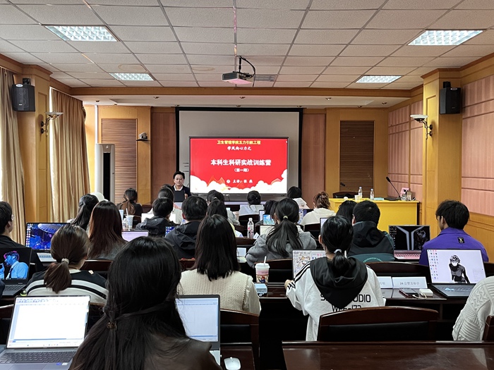 “五力引航”是学院围绕党建先锋力、思政浸润力、学风向心力、文化影响力、育人协同力等五个方面构建的品牌工程,多举措为打造高质量复合型卫生管理类人才奠定良好基础。为激发本科生科研热情、提升科研素养,学院开办科研实战训练营,主讲教师从早期科研准备开讲,实操演练与理论讲解相结合,让同学们掌握科研选题技巧、研究方法、问卷设计的原则以及常用统计软件操作步骤等重要内容,了解了培养批判性思维与自主研究能力的重要性。