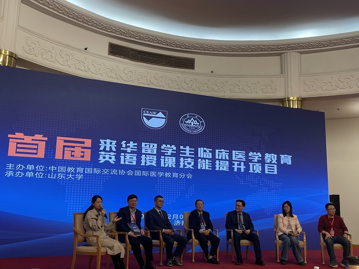 12月1日至3日,由中国教育国际交流协会国际医学教育分会主办、山东大学承办的首届来华留学生临床医学教育英语授课技能提升项目在济南举行,我校国际教育学院副院长黄艳带队参会。