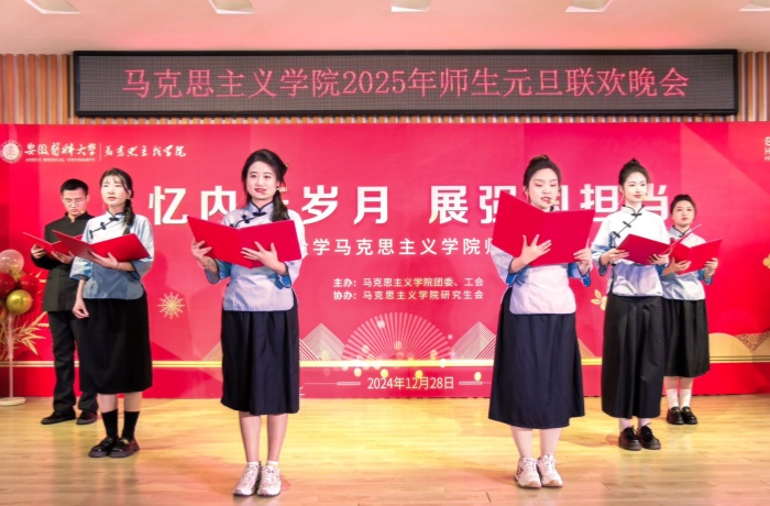 12月28日晚,马克思主义学院在校青年之家举办主题为“忆内迁岁月·展强国担当”的2025年师生元旦晚会。校党委常委、组织部部长李阳新出席活动并讲话。