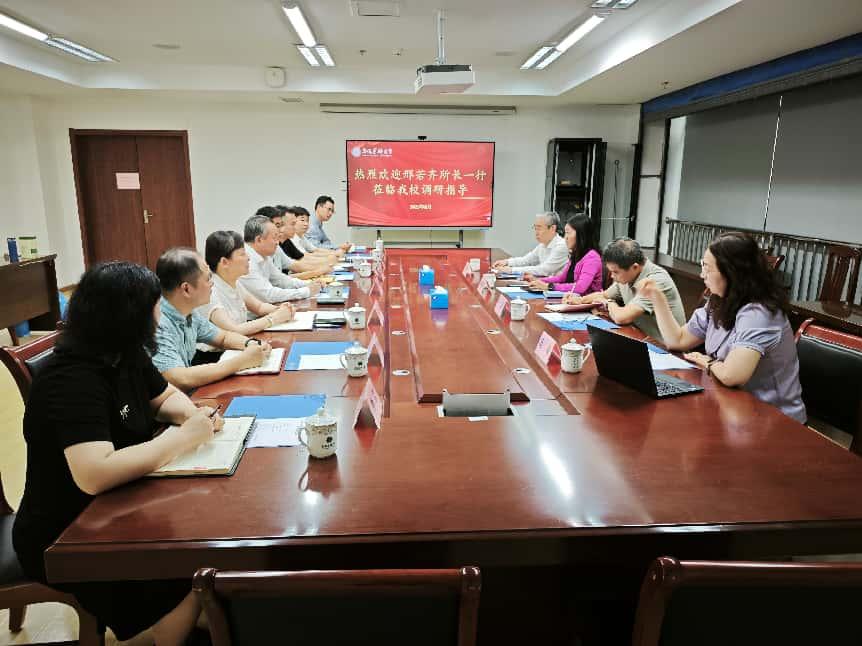 8月6日下午,国家卫生健康委科学技术研究所所长、九三学社中央医药卫生专门委员会主任邢若齐一行来校调研交流。校长翁建平会见邢若齐一行并举行会谈。九三学社安徽省委员会专职副主委、安徽省政协常委兼副秘书长范立新,广东省精准医学应用学会常务副会长兼秘书长孙炳刚应邀出席座谈会。校党委常委、副校长邱志海主持会议,校党委常委、组织部部长、统战部长李震静参会。